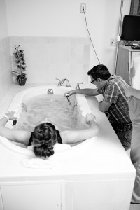 I was finally all settled in our room with an IV (just in case I might need it) and a monitor to make sure baby was doing well. After lots of questions, contractions, and a baby check I was ready for the jacuzzi!