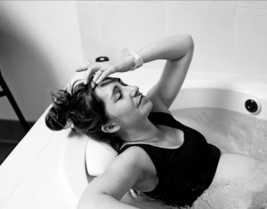 I was sweating profusely and after 30 minutes, something about the whole situation made me start to feel anxious and worry. I felt like I should get out of the tub but talked myself out of it. Contractions were so much more bearable in the water.