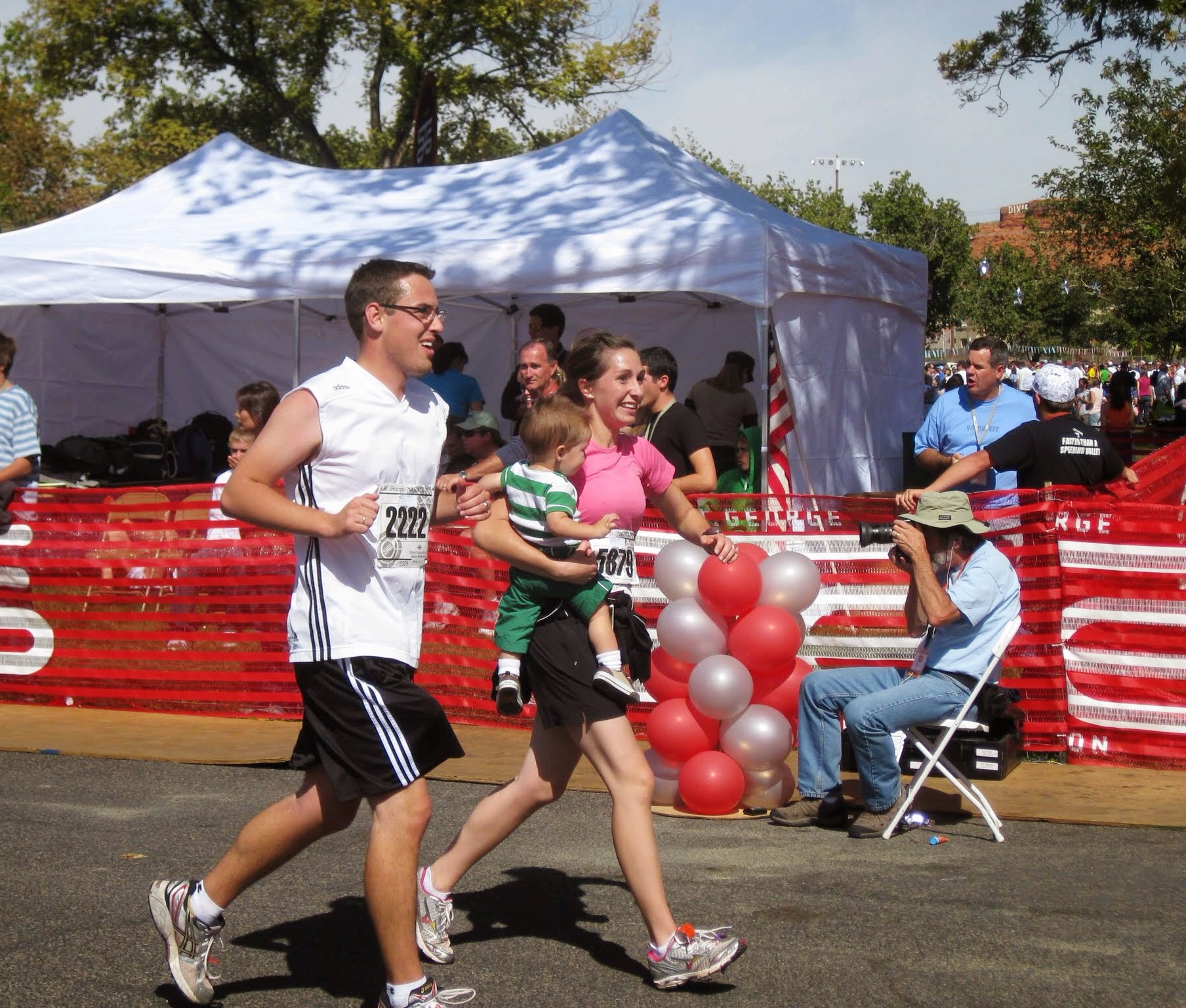 #tbt to the St. George Marathon in 2009. I had been sick in bed the whole week before, and wondering what was wrong. My hubby and I were supposed to run the marathon together that weekend and we found out the night before the race that I was two months pregnant! It was morning sickness! Elated, and not wanting everyone to find out the good news yet, we decided I would still run. We started the race and I had every intention of dropping out. Every single mile was so hard I could barely put one foot in front of the other. My patient husband would sweetly say, “Let’s just walk for a minute and see how you feel.” This went on for 18 miles! By then, I knew I HAD to finish, we were so close! Here we are right before the finish line with our little one year old. This is one of the million reasons why I love Austin so much! #besthubbyever#HappyAlmostValentinesDay #runmom #rundiaries#MarathonMomma #StGeorgeMarathon#runninromance